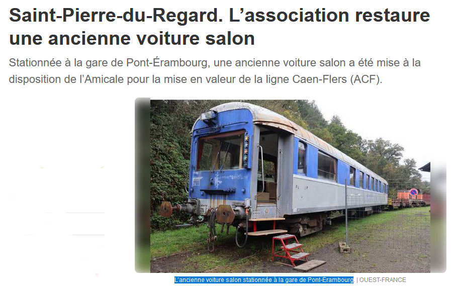 La voiture n'est plus sur la TRANSVAP mais sur un nouveau touristique à Saint-Pierre-du-Regard. Train Touristique des Collines Normandes