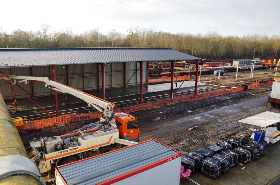 coulage du béton sous le hangar du Technicentre wagons de Tergnier (02) le 17-12-2018