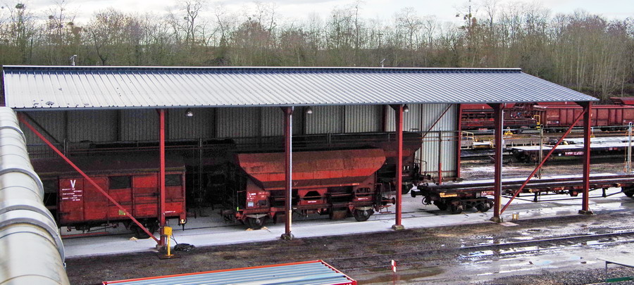 Sous ce hangar sont préparés les wagons qui vont entrer dans l'atelier en vue d'une révision.