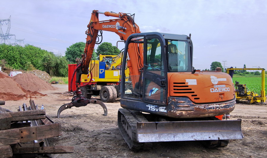 Pelle route à chenilles Daewàà type EXCA Solar 75 V n°50152 de 2005 Sodesam/UNIFER pour le déblaiement sur le chantier