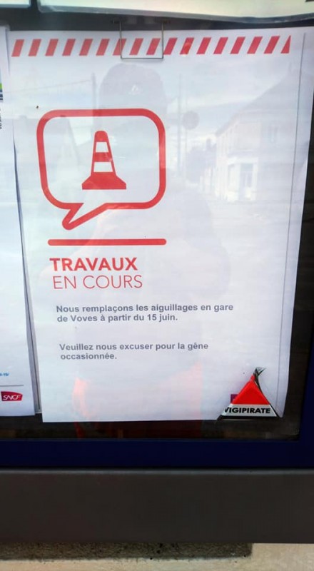 Voici en photo le début du RVB en gare de VOVES ( EURE ET LOIRE ) renouvellement voies 2 et pose d'une aiguille pour que la voie 4 rejoigne la voie 2 pour les train en provenance de CHARTRES .