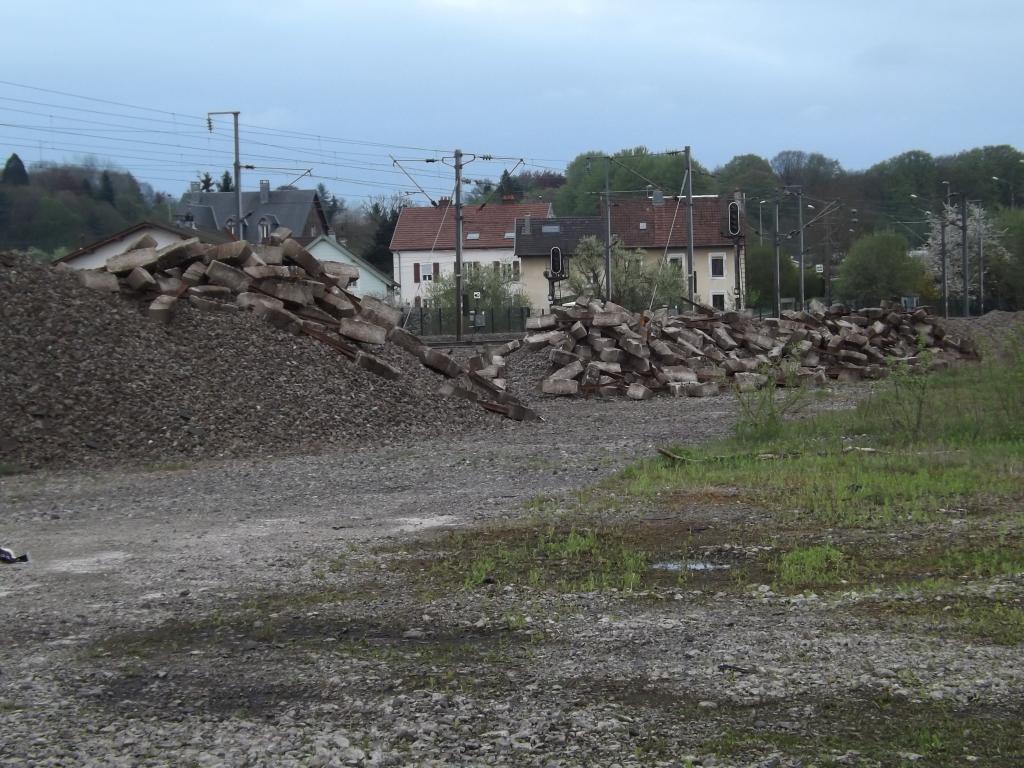 Ce matin en gare de Belfort, une rame de wagon plat, chargé de vieux ballast est attelé à la G1206 Génifer, elle va peut-être déchargé à Danjoutin sur l'ancien dépôt Millet. Une pelleteuse rail-route est des camions benne, sont actuellement présent sur zone.