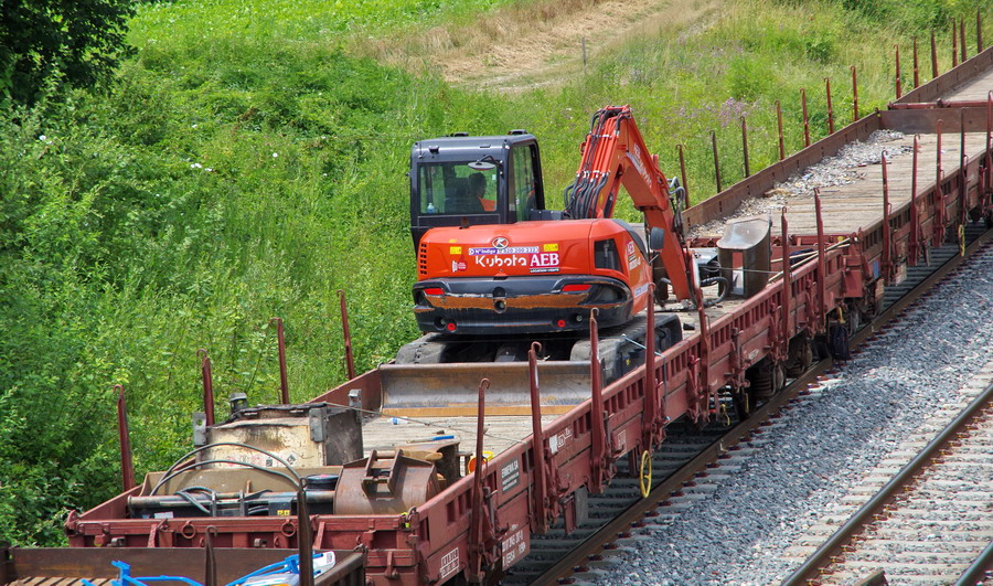 passage du train F1F2 de ramassage de fin de chantier sur le RVB à Jussy (02) le 05-07-2018