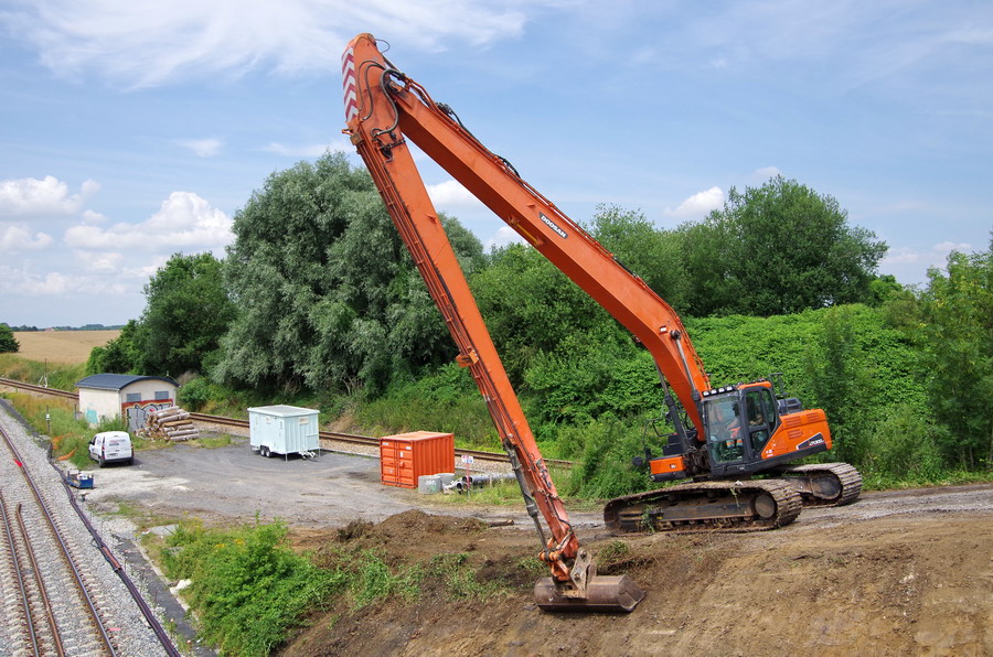 nettoyage des talus avec la DOOSAN Crawler Excavator DX300LC - 5 au niveau des Ponts de Bray à Jussy (02)