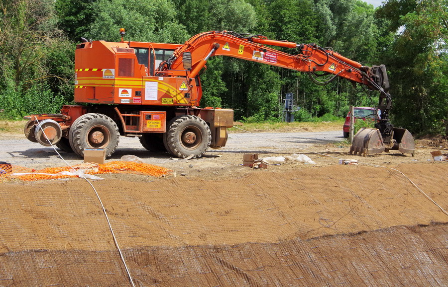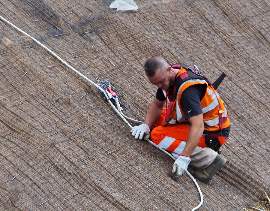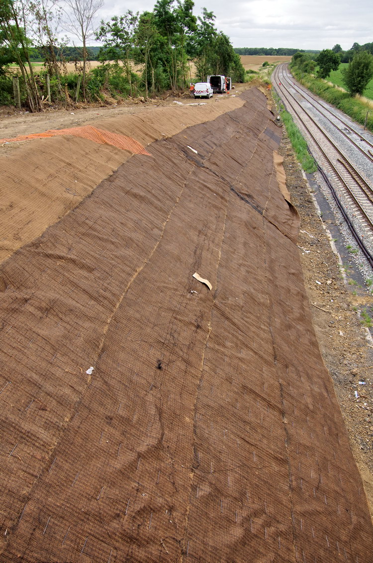 pour la mise en place des rouleaux de géotextiles en fibre de coco naturelle biodégradables et écologiques. de la société Tensar