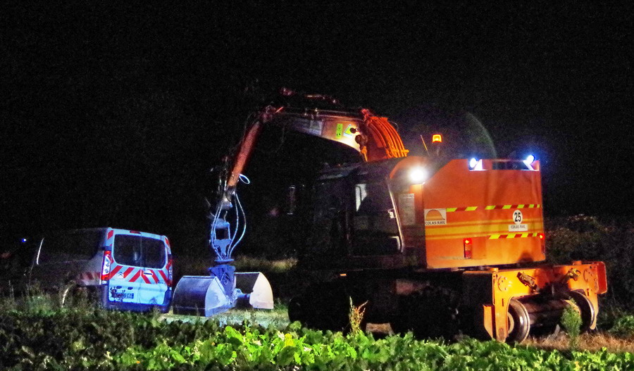 la Pelle Rail route Case 788 PRR n°CGG0229077 - Colas Rail F 620000 36 pour les travaux nuit du 24 au 25 juillet 2018 au niveau des Ponts de Bray à Jussy (02)