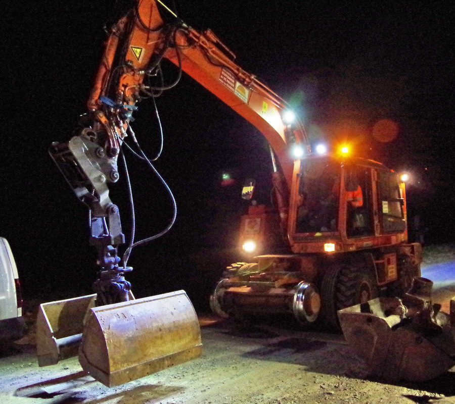 à Jussy (02) avec la présence de deux Pelles Rail route Colas Rail et d'une Bourreuse ETF