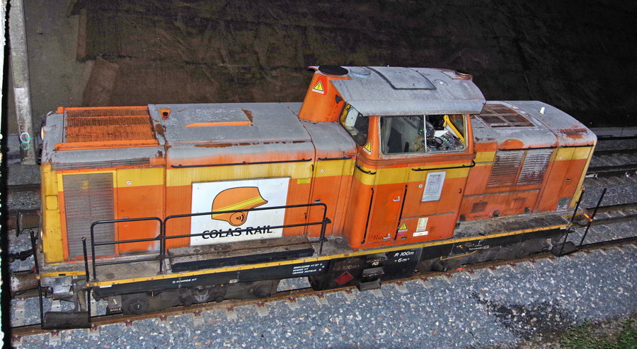 avec la présence des deux Pelles Rail route Colas Rail pour les travaux de caniveau