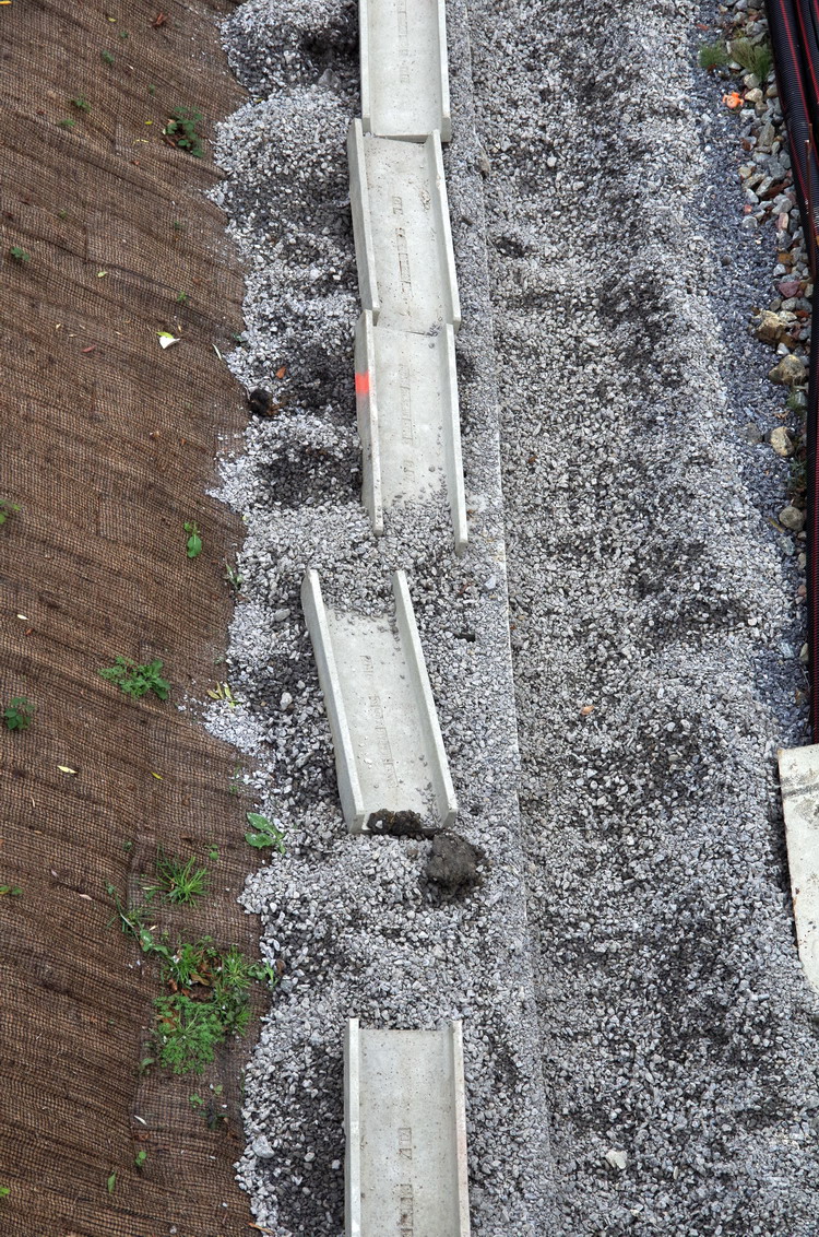 pour des travaux de finition avec la mise en place des caniveaux pour les eaux fluviales