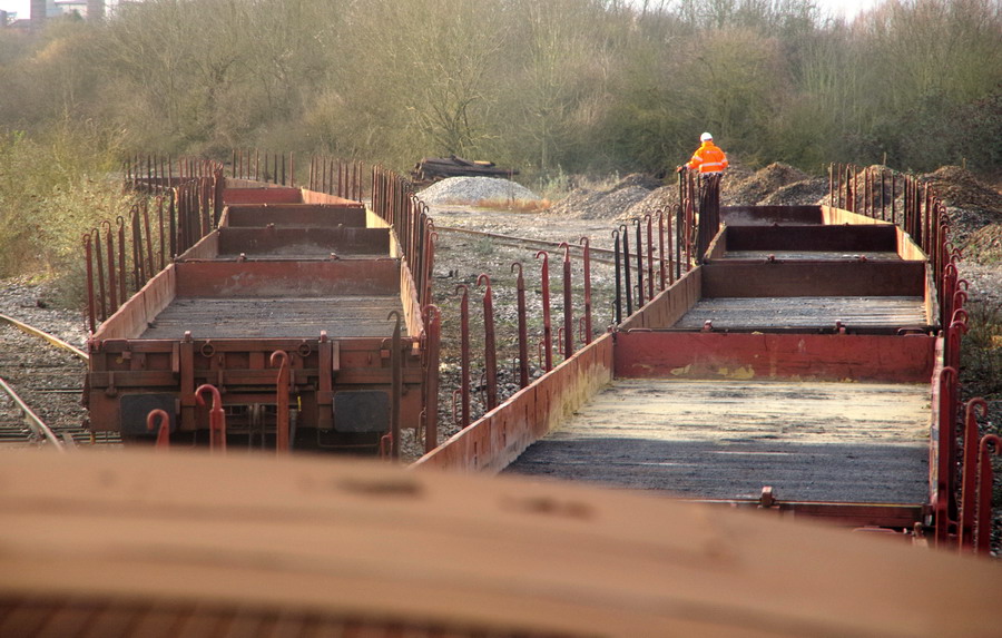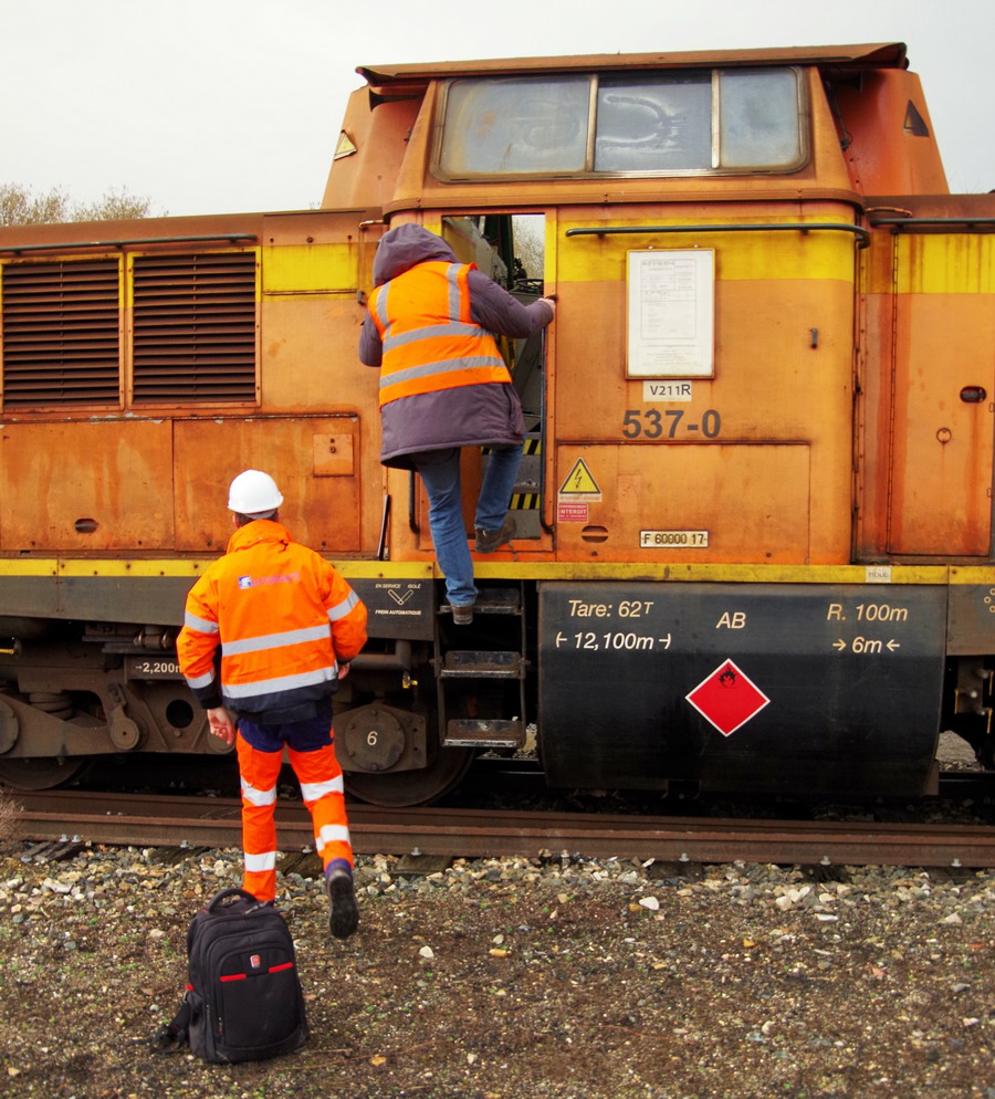 pour la manœuvre de wagons plat R39 à ranchers pour le chargement de ballast pour le RVB de la voie 2