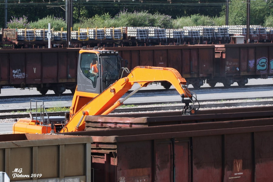 Pelle route DOOSAN DX190W pour le transfert du ballast sur la base de travaux du Puy-Imbert le 03-07-2019