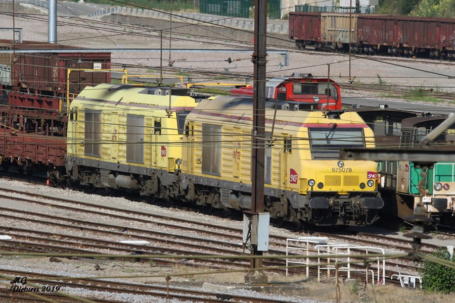 BB 675078 et BB 675082 sur une rame de TTx sur la base de travaux du Puy-Imbert le 07-07-2019