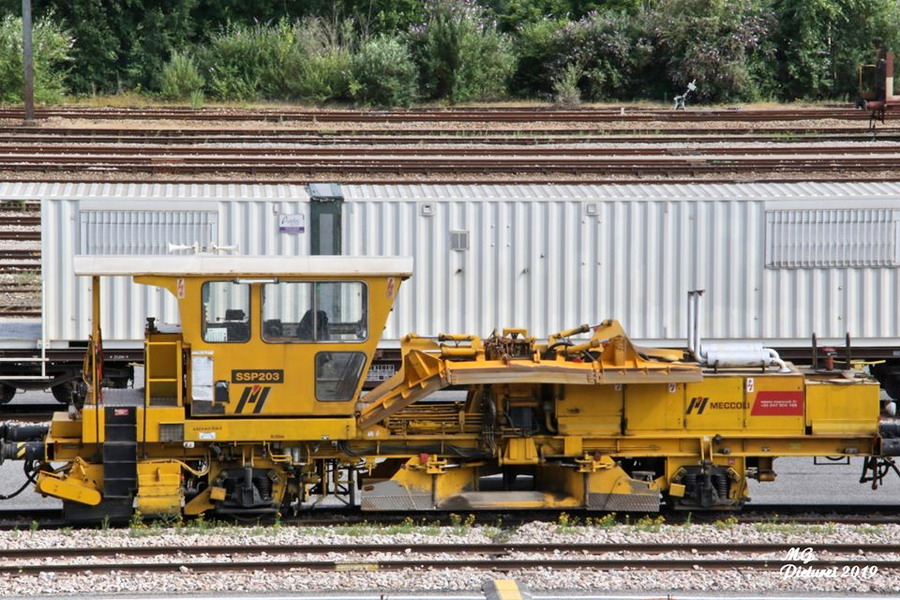 Régaleuse de type SSP203 Framafer n°507 - 99 87 9 225 505-6 Meccoli base de travaux de Puy-Imbert le 09-07-2019
