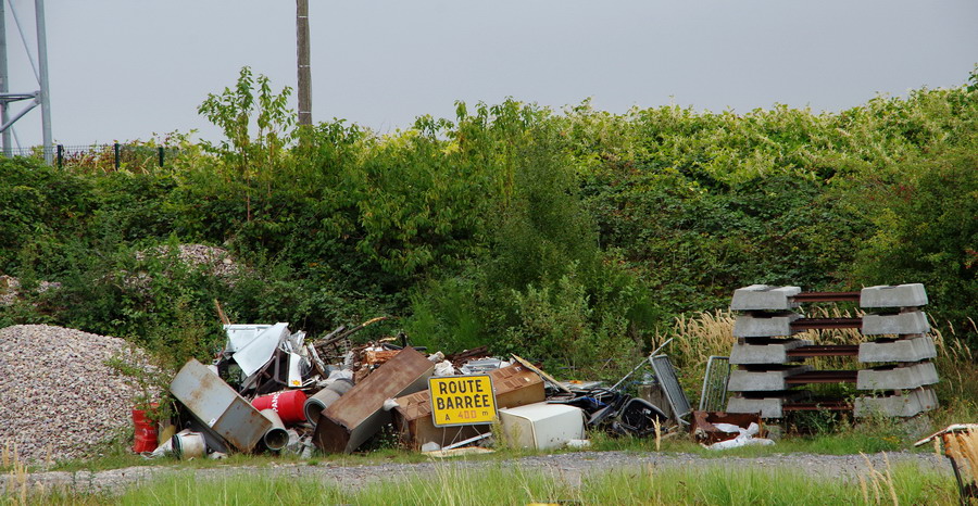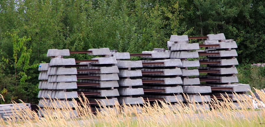les vieux coupons de rails sur la base de chantier en gare de Poix-de-Picardie (80) le 03-09-2019