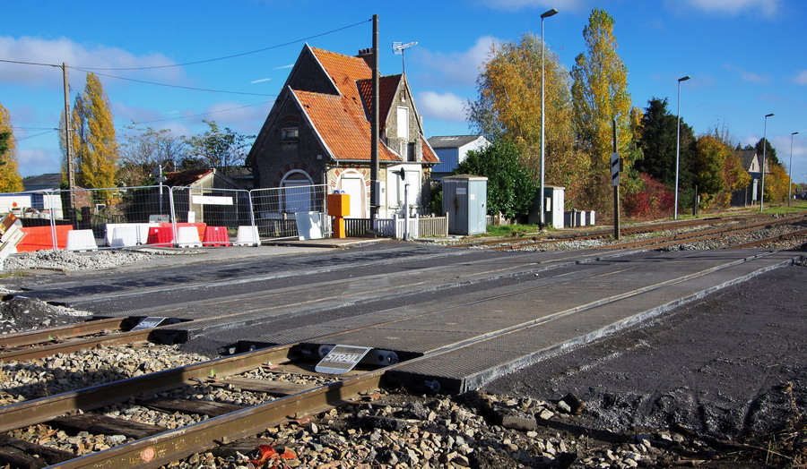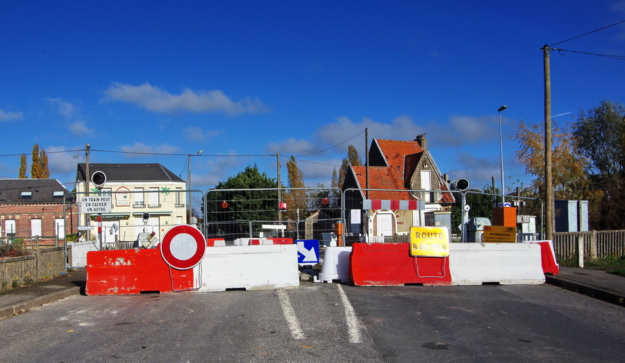 Travaux au niveau du Pont de Bray à Jussy (02) pour la pose des caniveaux avec les couvercles pour l'écoulement des eaux de pluie