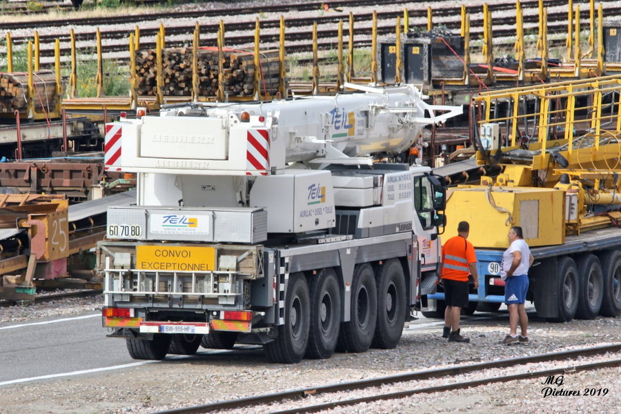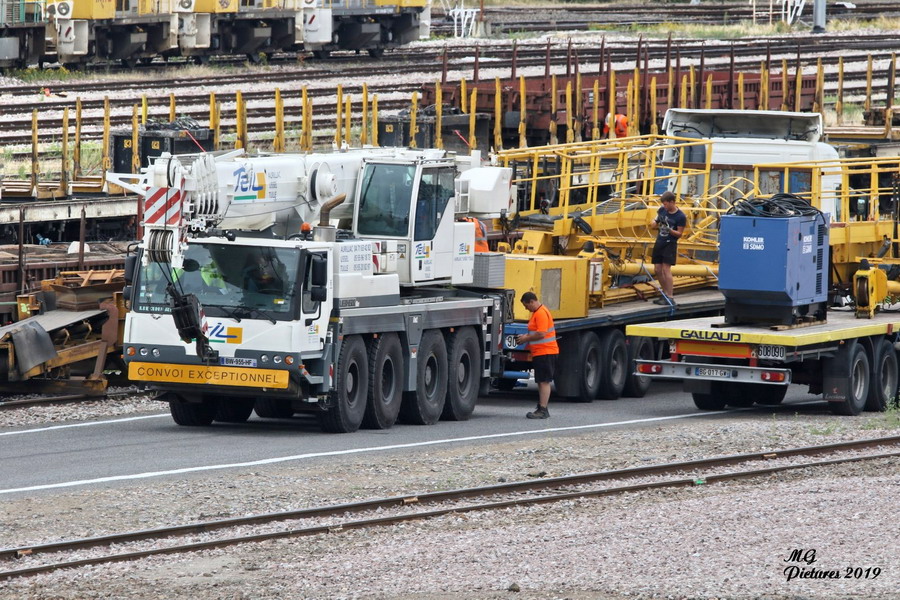 arrivée d'un camion grue Liebherr de 70 T de l'entreprise Teil pour le le P95 d'ETF au Puy-Imbert le 11 juillet 2019