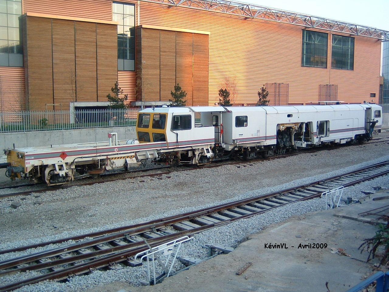 Et toujours la même Daewoo de Colas Rail répartissant le ballast au godet sur une voie du tram :wink: :