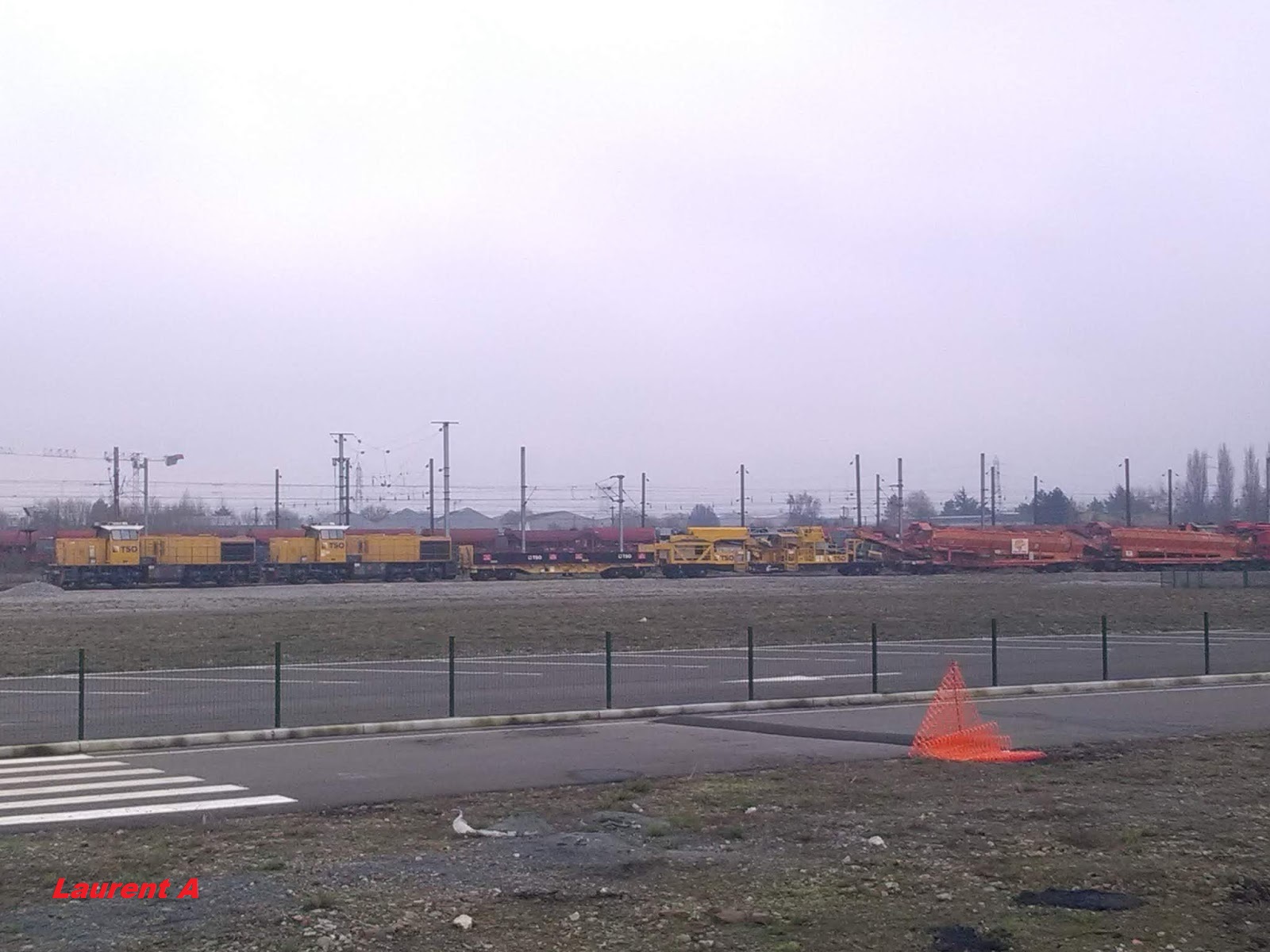 La présence sur le site de la base arrière pour les travaux sur la LGV Nord à Lille Délivrance avec la Bourreuse de ligne