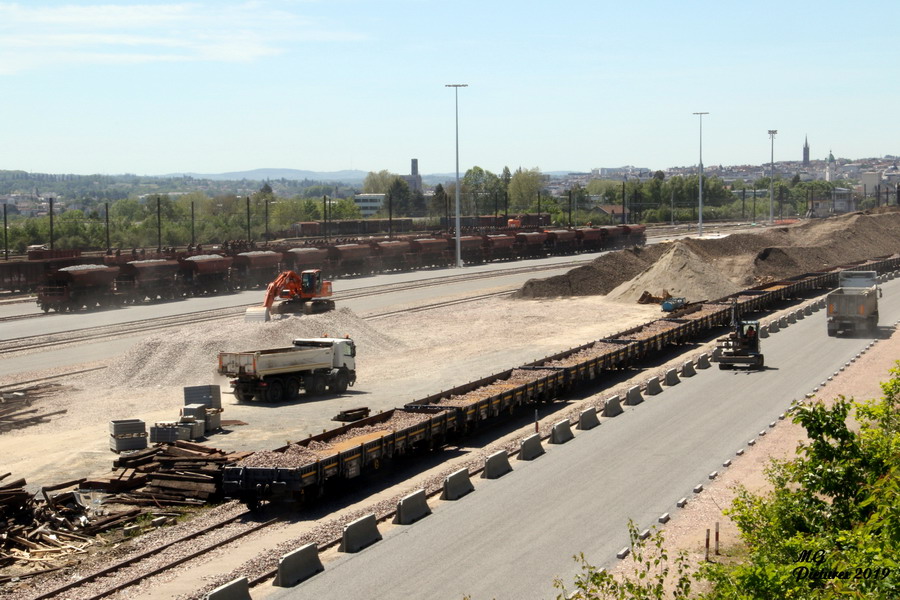 - Vue des travaux sur la nouvelle base arrière de l'ex triage du Puy-Imbert le 14-05-2019