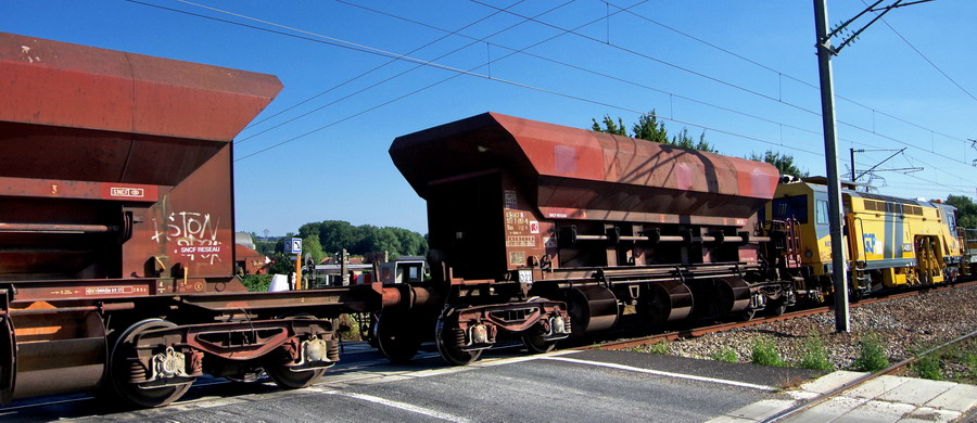 rame de wagons Trémies D12 SNCF RESEAU au PN à Saleux le 29-07-2019