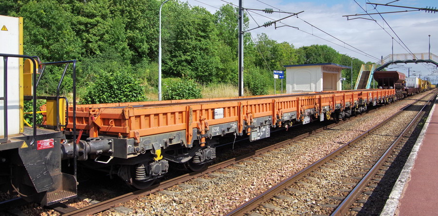 Rame de wagons Falns de Rolanfer 99 87 9 352 xxx-x de Transalp Renouvellement gare de Poix de Picardie le 30-07-2019