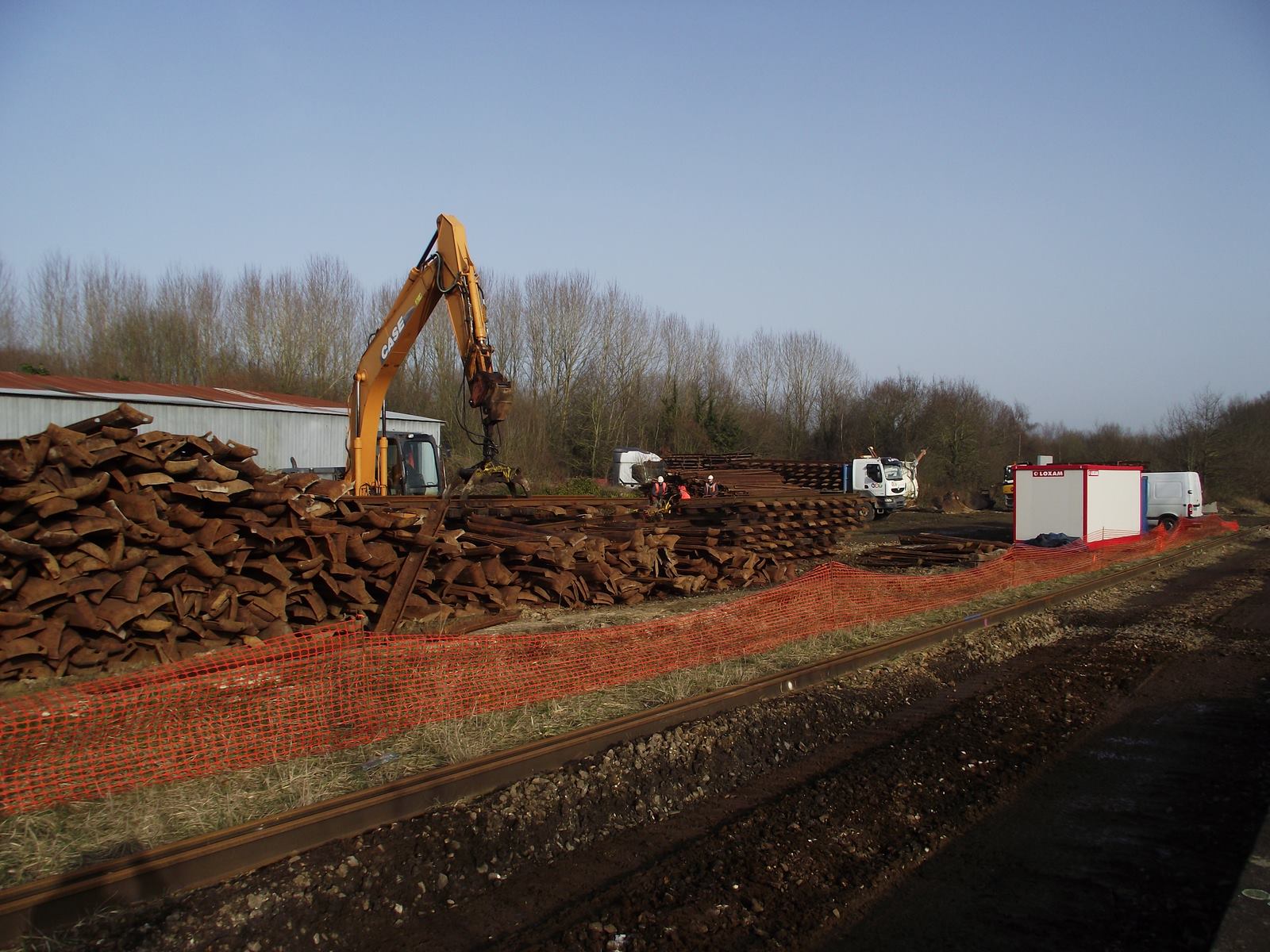 le TCM60 commence le chantier aujourd'hui, hier il était en préparation,(déchargement des containers et pièces de rechanges,chargement des traverses et même un petit coup de peinture) Daccord07