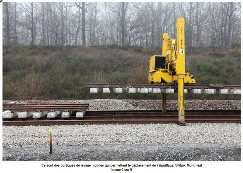 Pose de l'aiguillage de plusieurs dizaines de mètres à l'aide de portiques