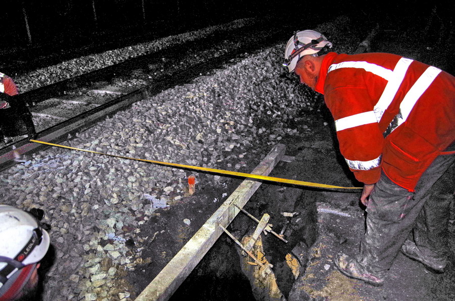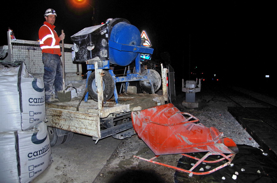 - préparation des trous pour le coulage du béton pour le mâtage au niveau du PN 58 à Chauny nuit du 03 au 04-05-2019
