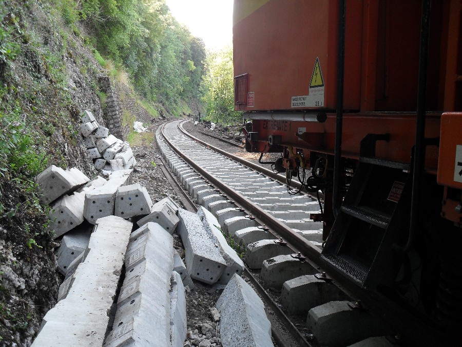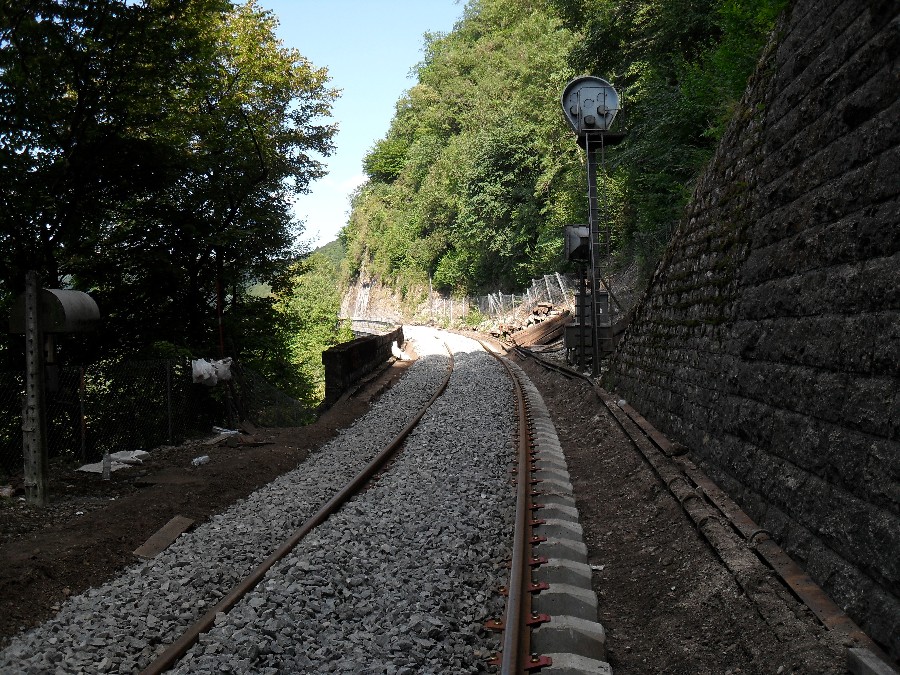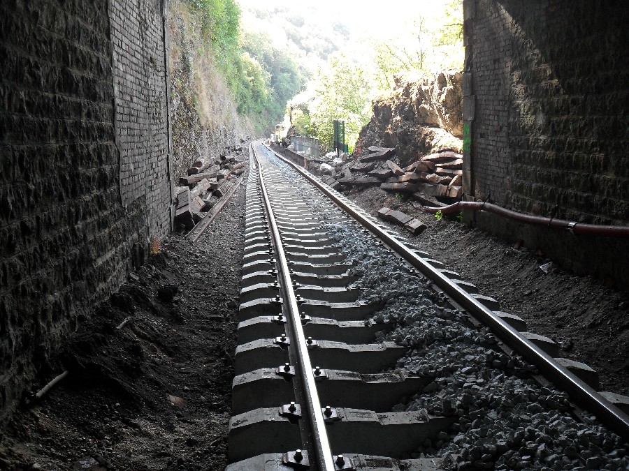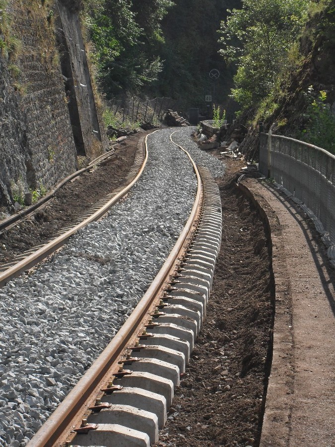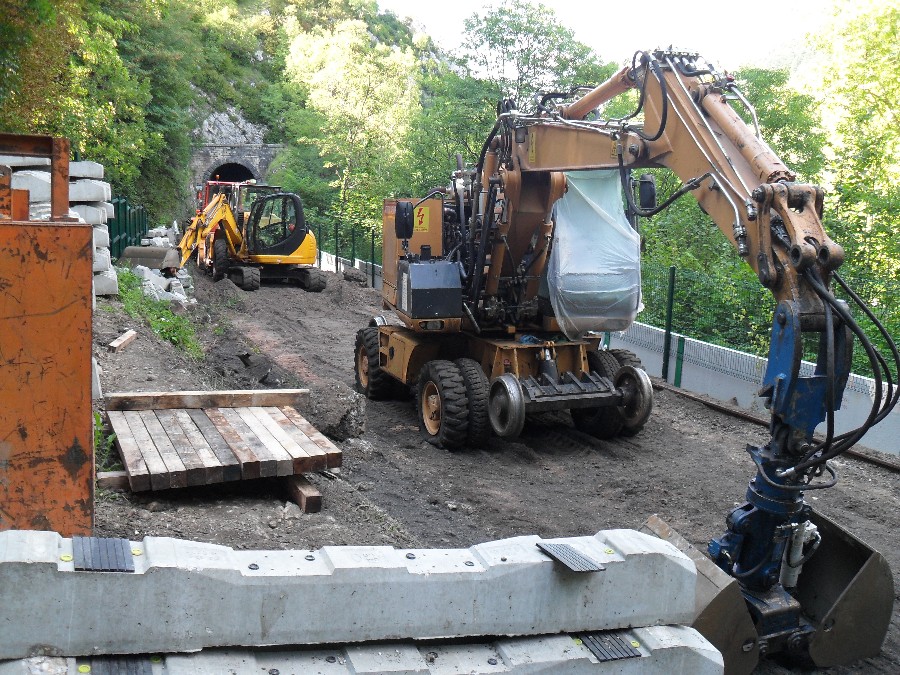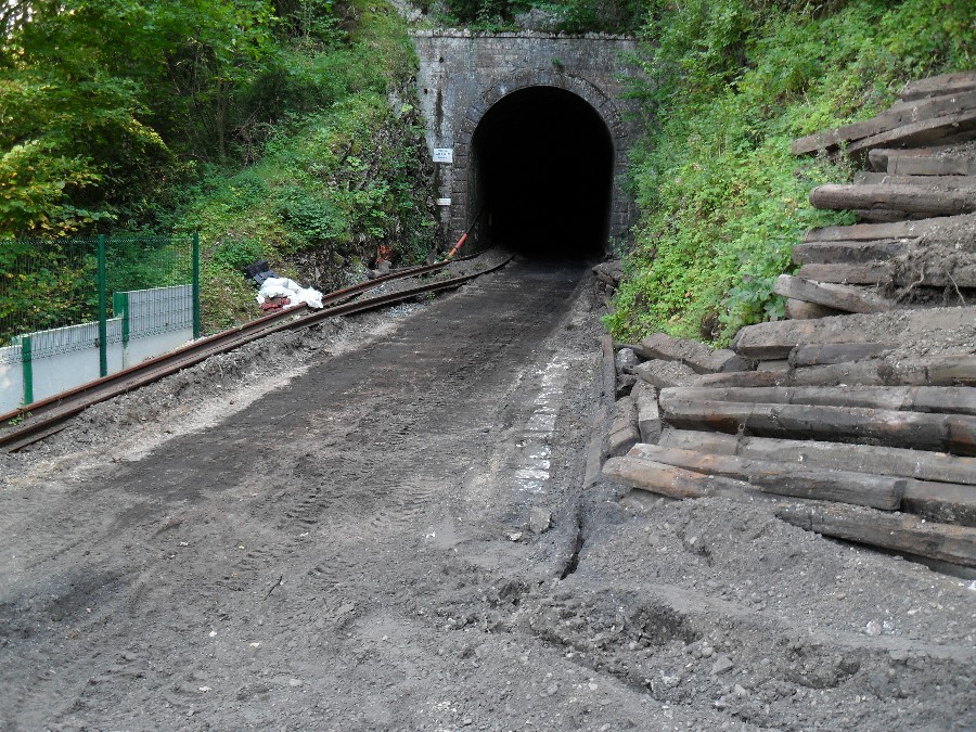 Retour dans la côte de Morre, le ballastage à donc commencé, et le chantier en est déjà au niveau du dernier tunnel, celui de la porte taillée, le plus dure à donc été fait.