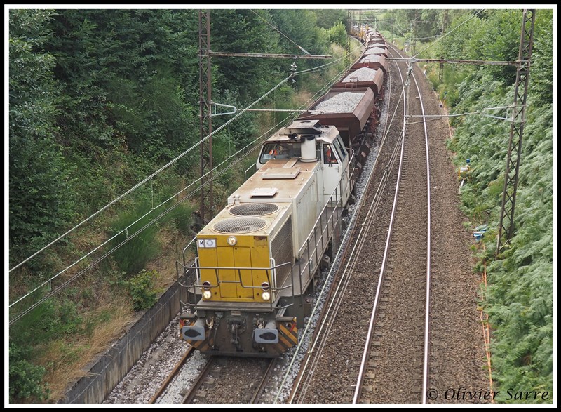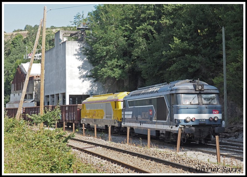Voici quelques photos du jour avec un UM de BB67500 et sa rame de tombereaux de ballast au départ de la carrière de Pagnac afin d'alimenter la base de travaux de Puy-Imbert ...