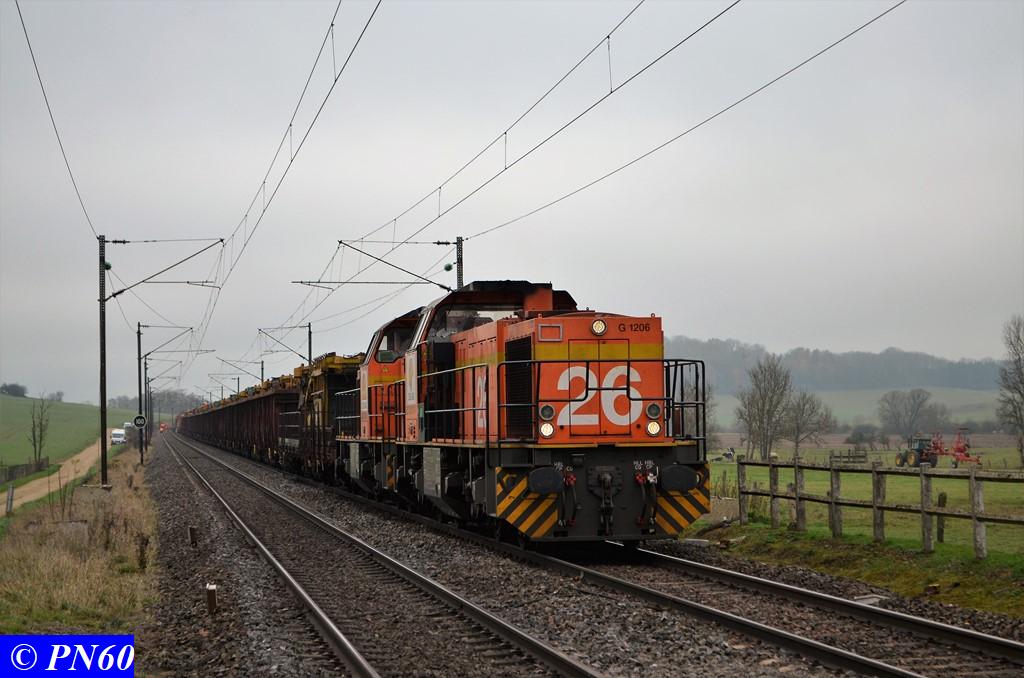 Encore quelques photos des deux G.1206 COLAS RAIL n° 26 - 9287 0001761-1 et 25 9287 0001760-3 au moment où elles arrivent au niveau du PN 60. Là le train va encore être de nouveau scindé en deux, les deux G.1206 avec les wagons tombereaux vont franchir le PN afin que le train de dégarnissage puisse continuer a avancer avec juste quelques wagons jusqu'à celui-ci.