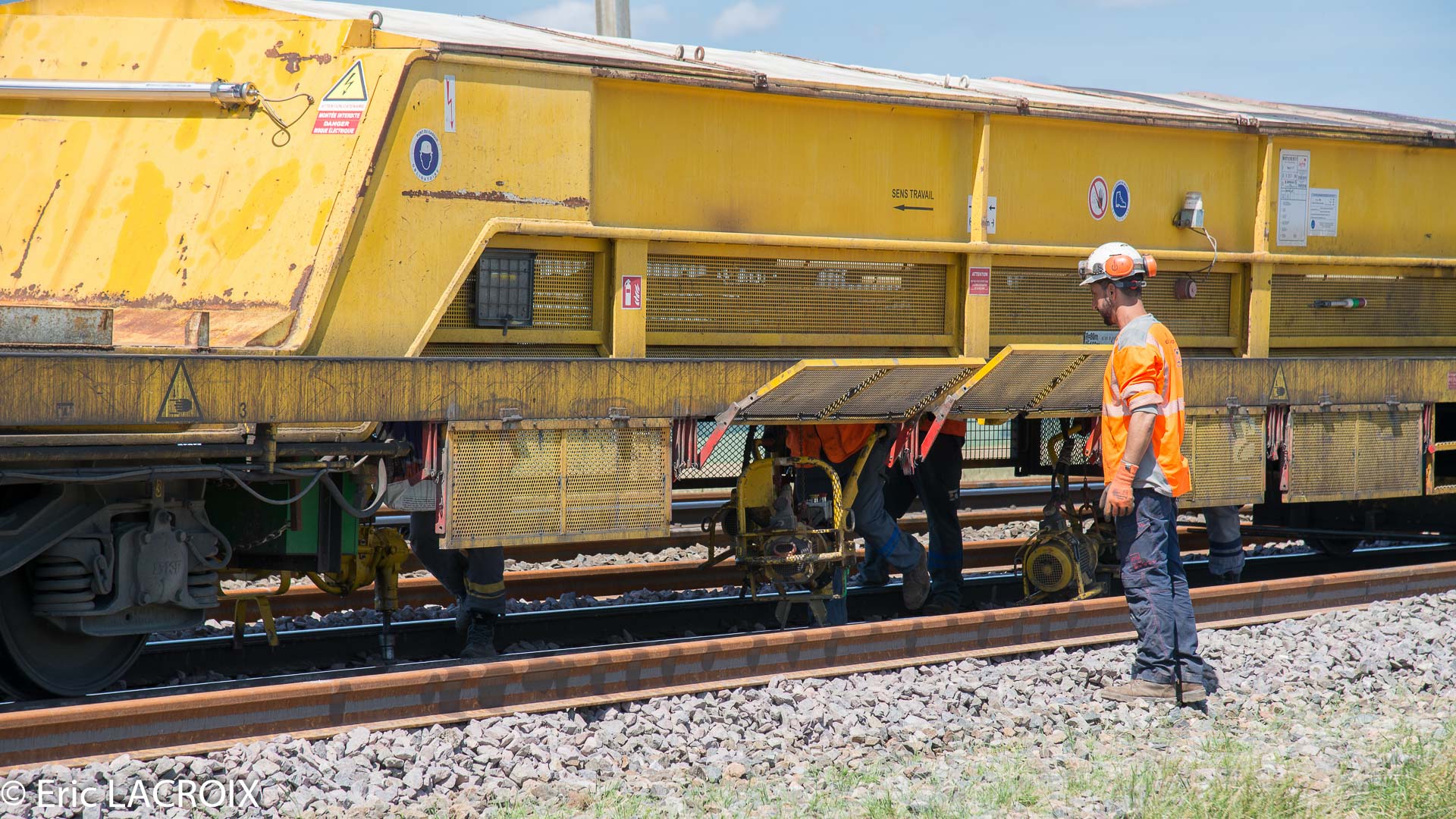 Après avoir effectué un premier passage le long de ce train de dégarnissage COLAS RAIL RM 900-HD 100 AHM, je décide de refaire un nouveau passage dans l'autre sens et de remonter à nouveau la zone de travaux.