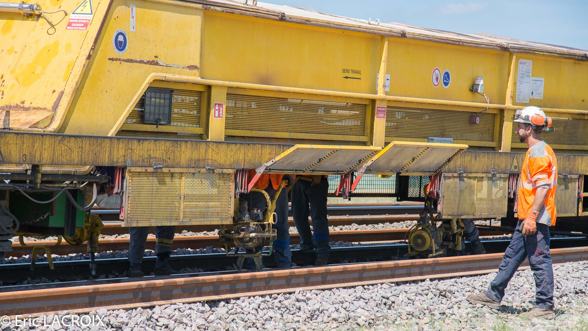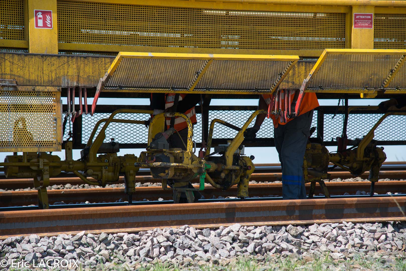 Nous remontons le train de dégarnissage proprement dit avec la rame RM 900-HD 100 AHM pour arriver à sa tête où nous retrouvons les deux G.1206 COLAS RAIL n° 26 - 9287 0001761-1 et 25 9287 0001760-3 aperçues la veille.