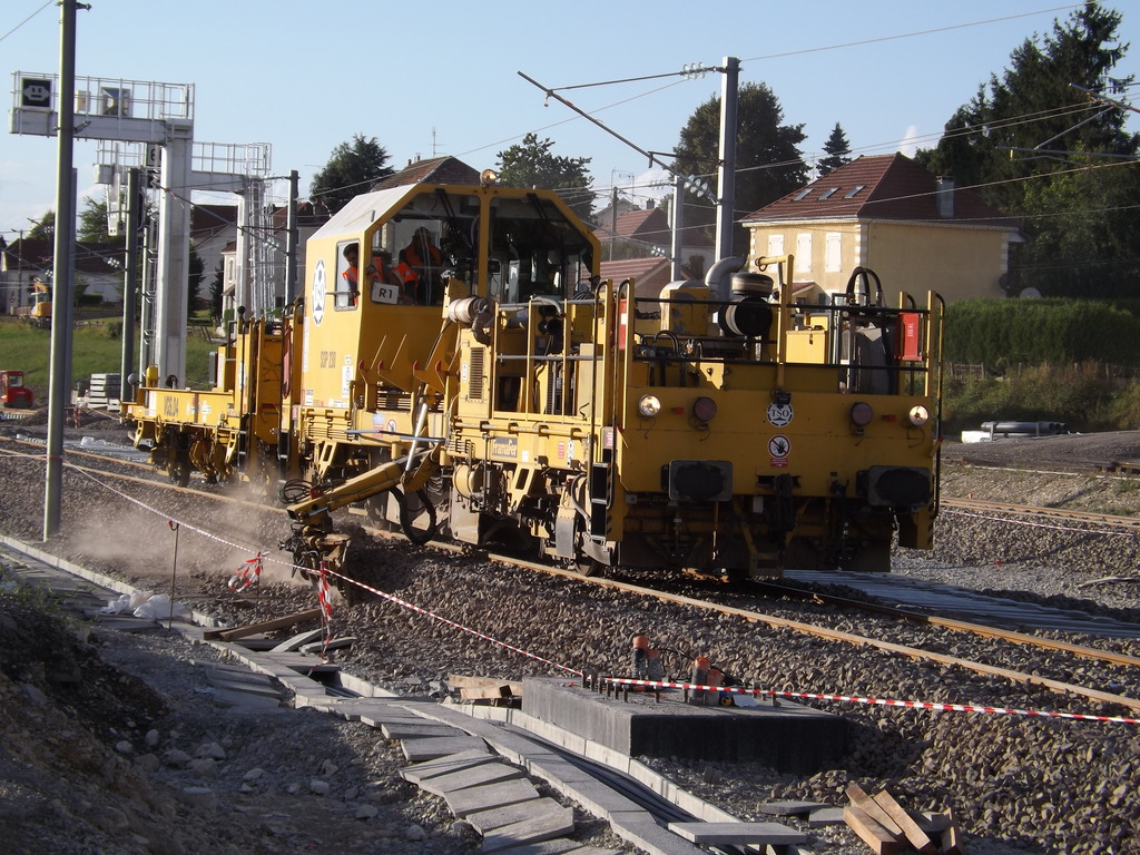 De nouvelles aiguille son aussi en place L'ensemble de la voie est presque entièrement monté côté Belfort. Le ballast cachant certaine partie.