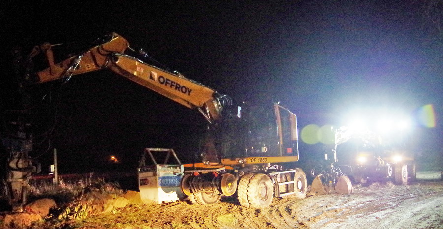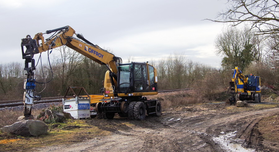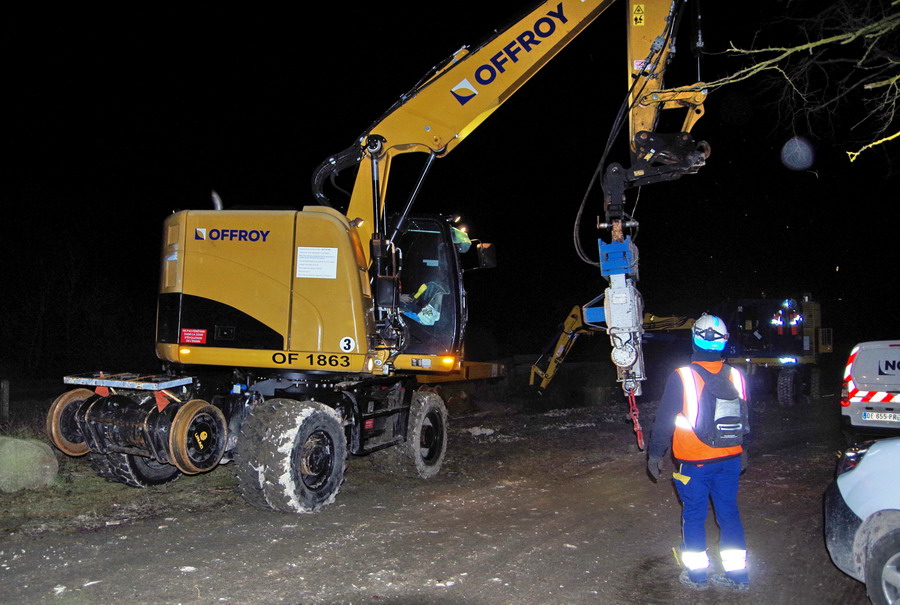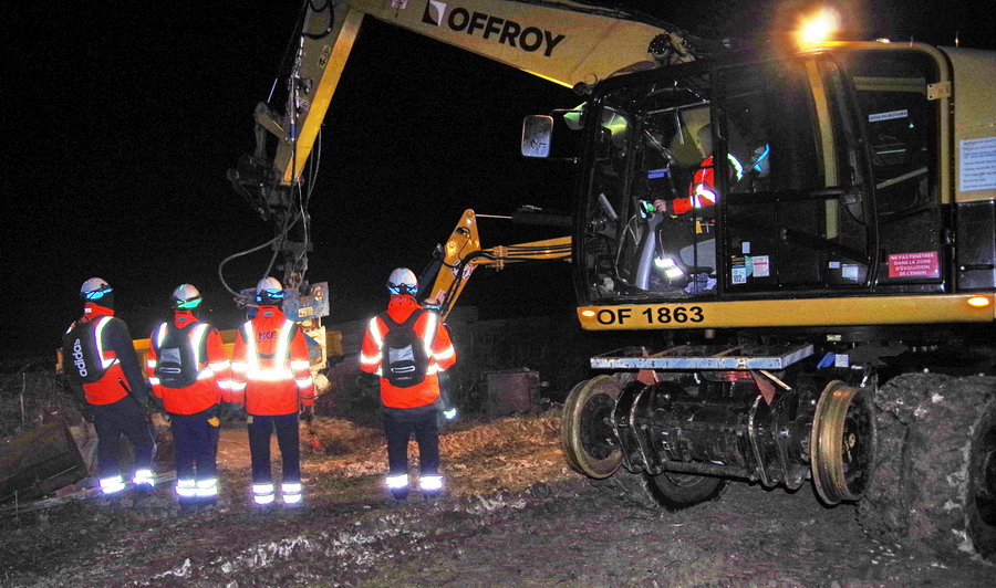 il y a deux pelles Rail route présentent pour le chantier avec les équipe de TSO et Offroy du groupe NGE