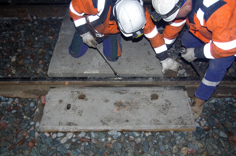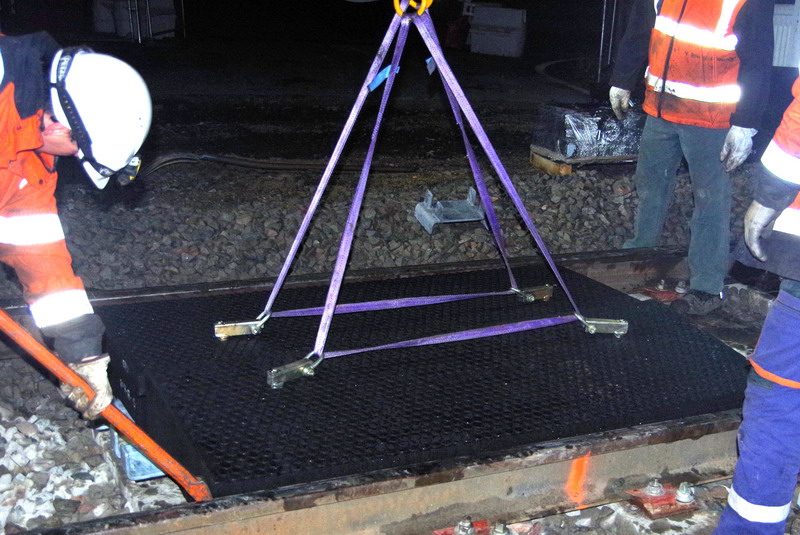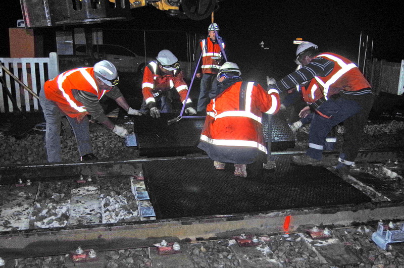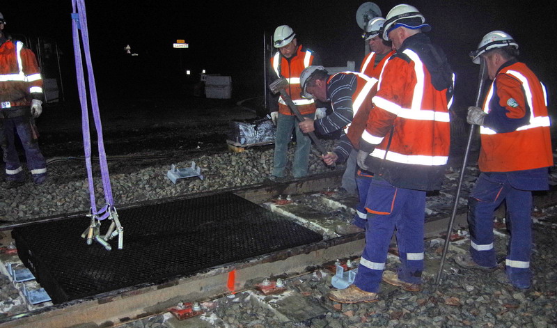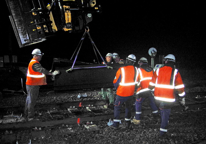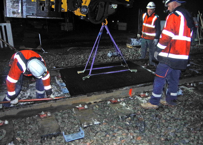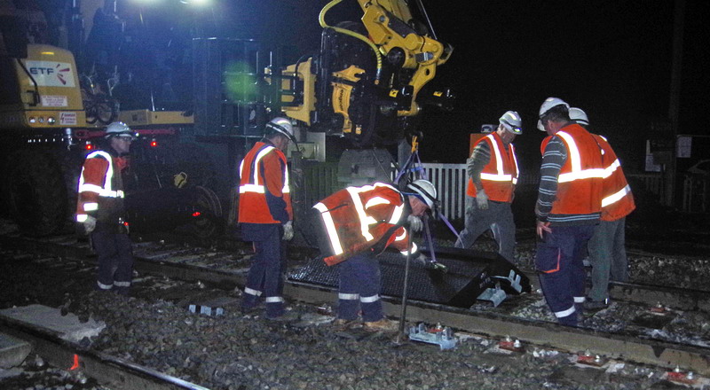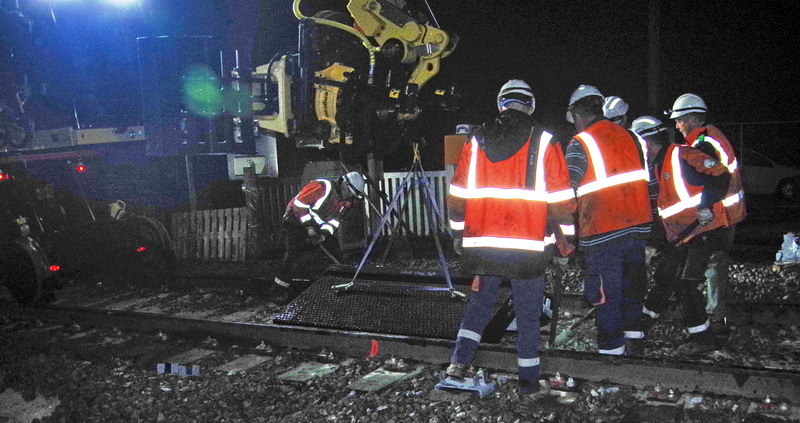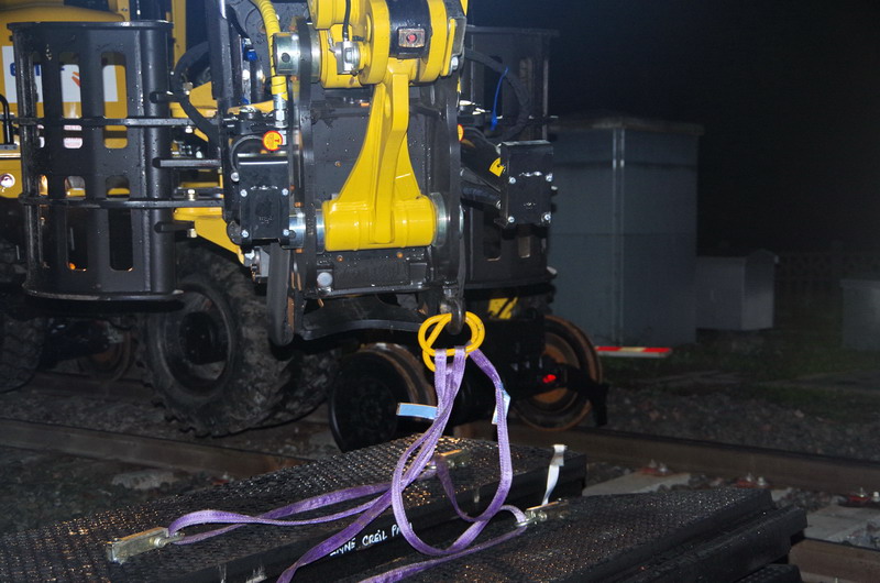 il est 1h59 avec la préparation pour la mise en place des plaques ROSEHILL pour le PN 51 avec la Pelle Rail route UNAC 22F d'ETF