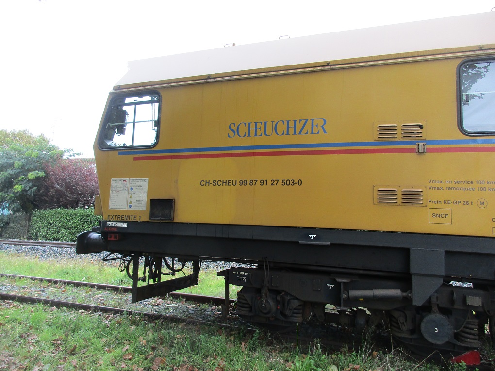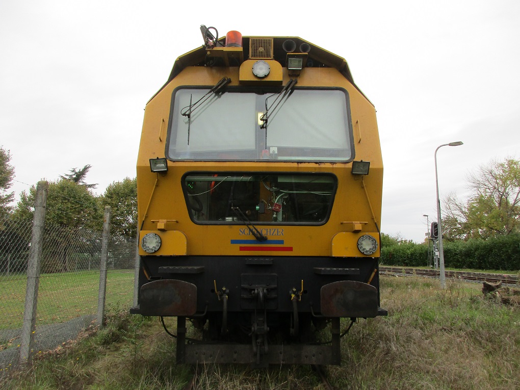Hasard et coup de chance au cours d'un bref séjour dans la région. Mardi 22 Octobre 2019 un train meuleur de rails stationne sur une voie en impasse en gare de Sainte Foy la Grande. C'est la rame GRIZZLY 102 de la société Suisse SCHEUCHZER :