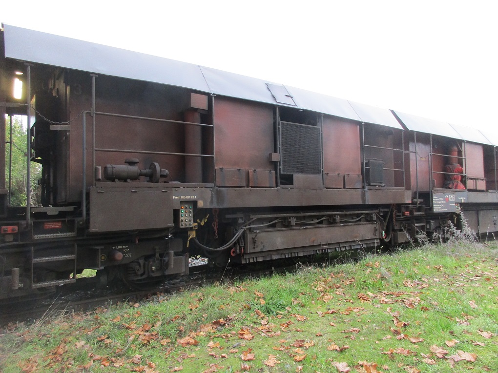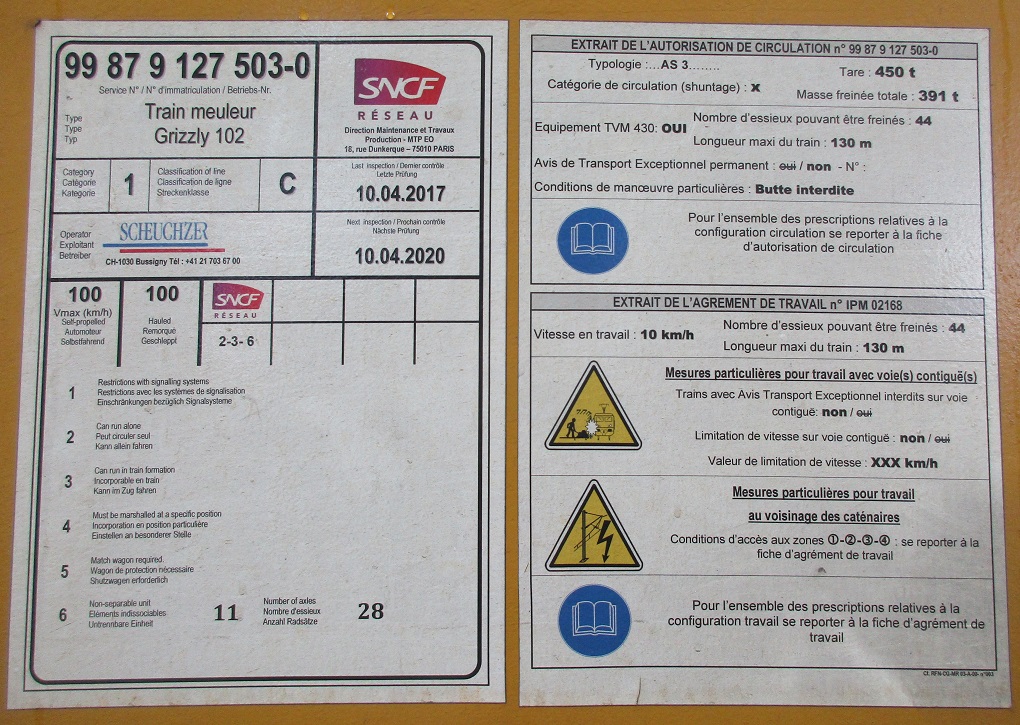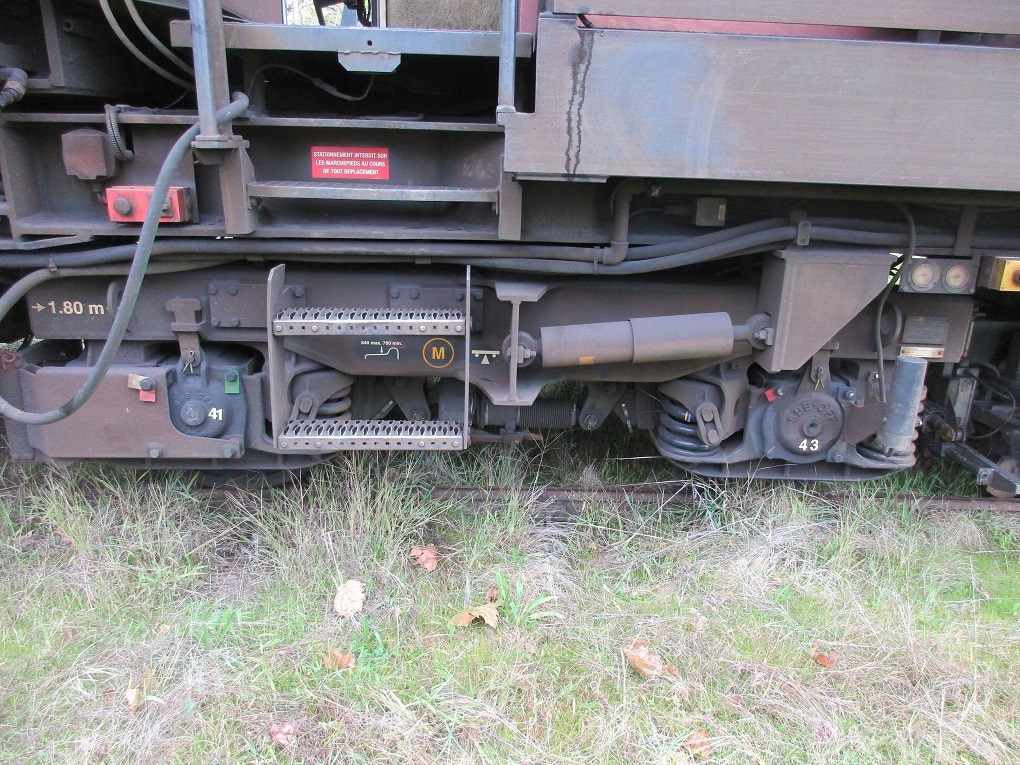 Sur le chantier actuel, elle enlève par meulage la couche décarburée du rail neuf. La suppression de cette couche de protection dure (sortie d'usine) élimine les défauts de fabrication ainsi que les microfissures provoquées par écrasement aux passages des circulations tout en améliorant les caractéristiques générales de résistance du rail. En évoluant, ces cassures provoquent des infiltrations d'eau qui entraînent à leur tour l'apparition de corrosion et de rouille. Les instruments d'analyses et de mesures sont disposés dans les éléments d'extrémité. Ici l'extrémité 1 :