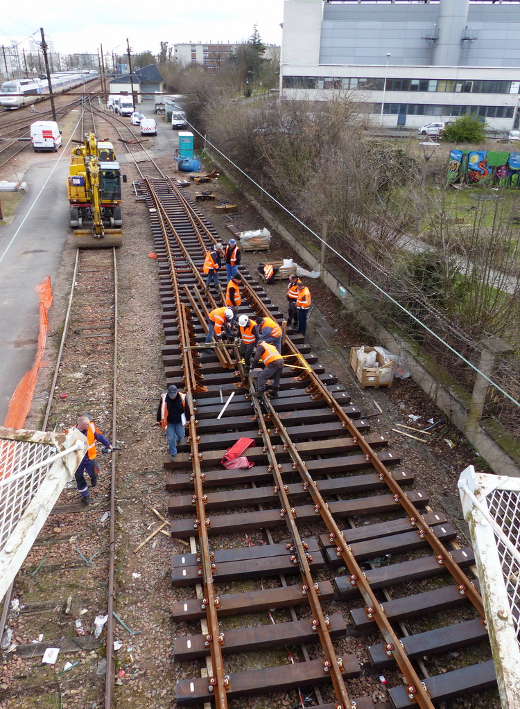 et le Chenillards à ridelles et à moteur Honda GX avec une Tirefonneuse Geismar de l'équipe Infrapôle centre UP voie de Tours le 26-02-2015