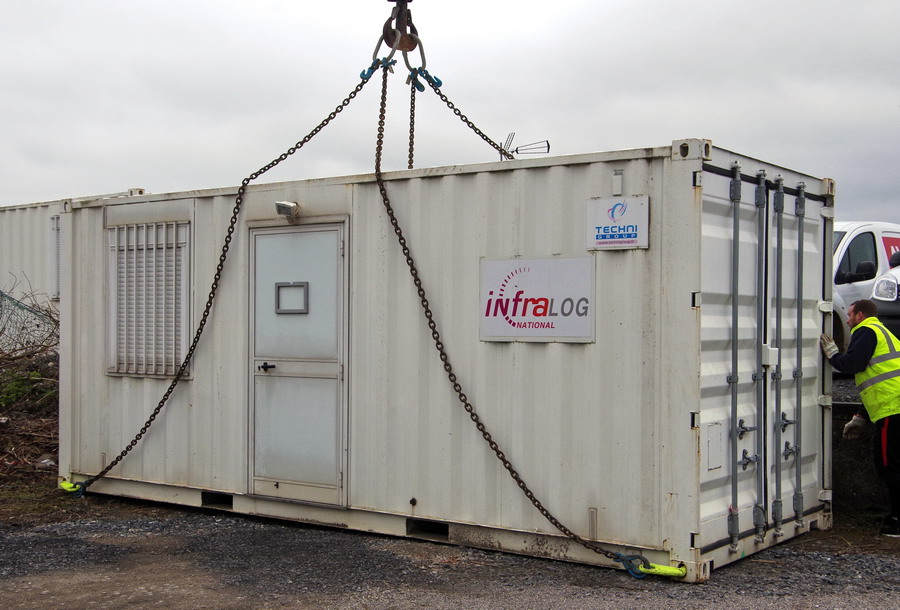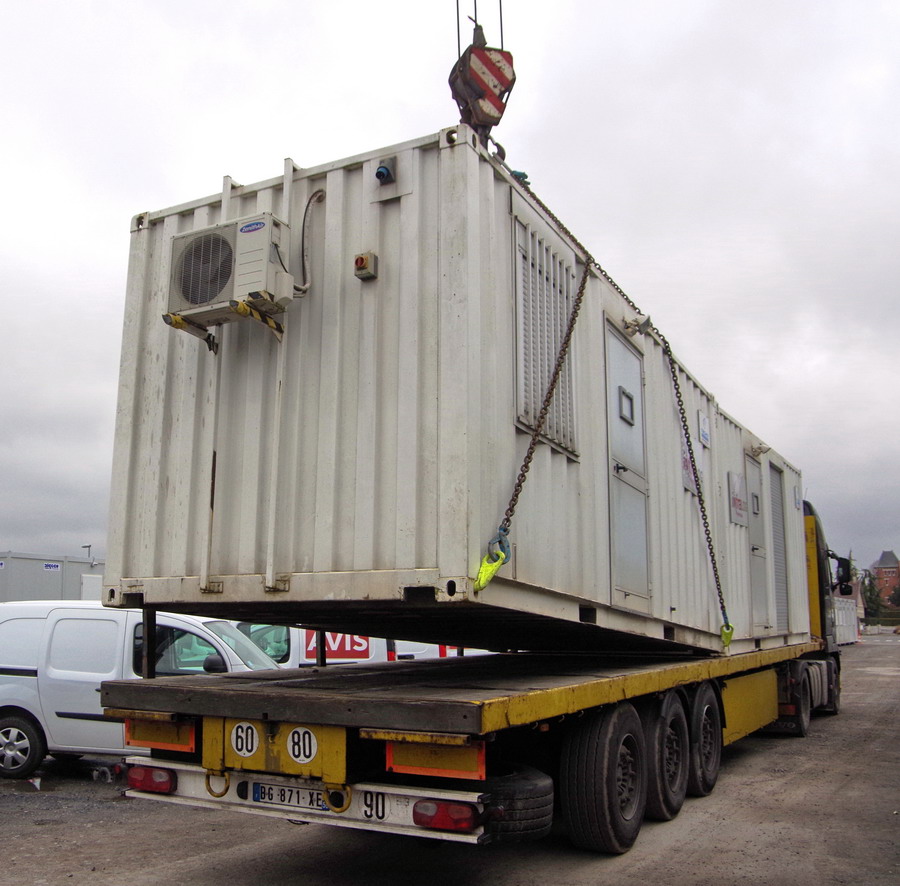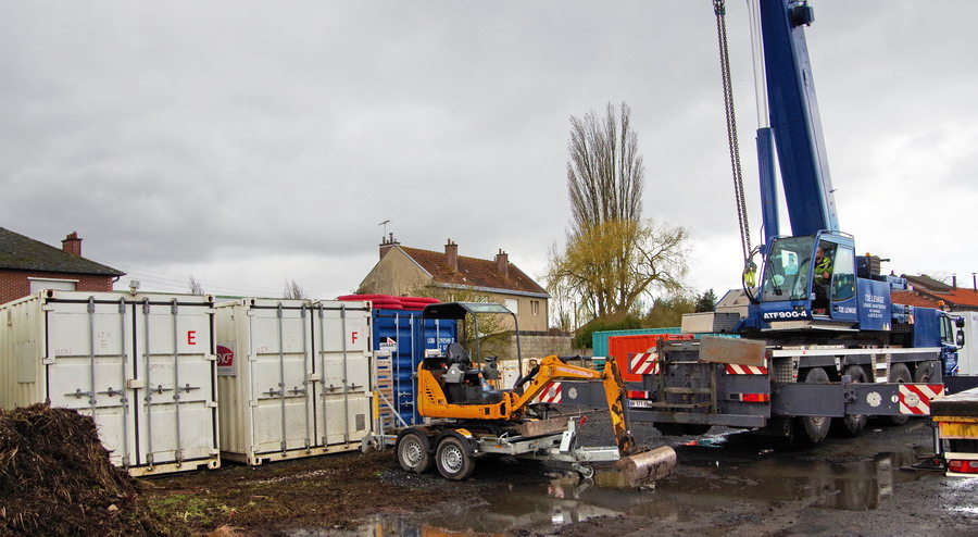 mise en place des deux bungalow de l'Infralog National sur la base de travaux à Chaulnes le 22-03-2018