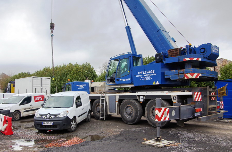 camion grue FAUN ATF 90 G-4 pour le soulèvement des deux bungalow à Chaulnes le 22-03-2018