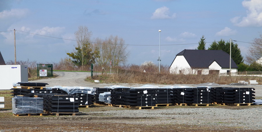 le stock des traverses béton pour le RVB sur la base de travaux de Laon le 26-03-2018