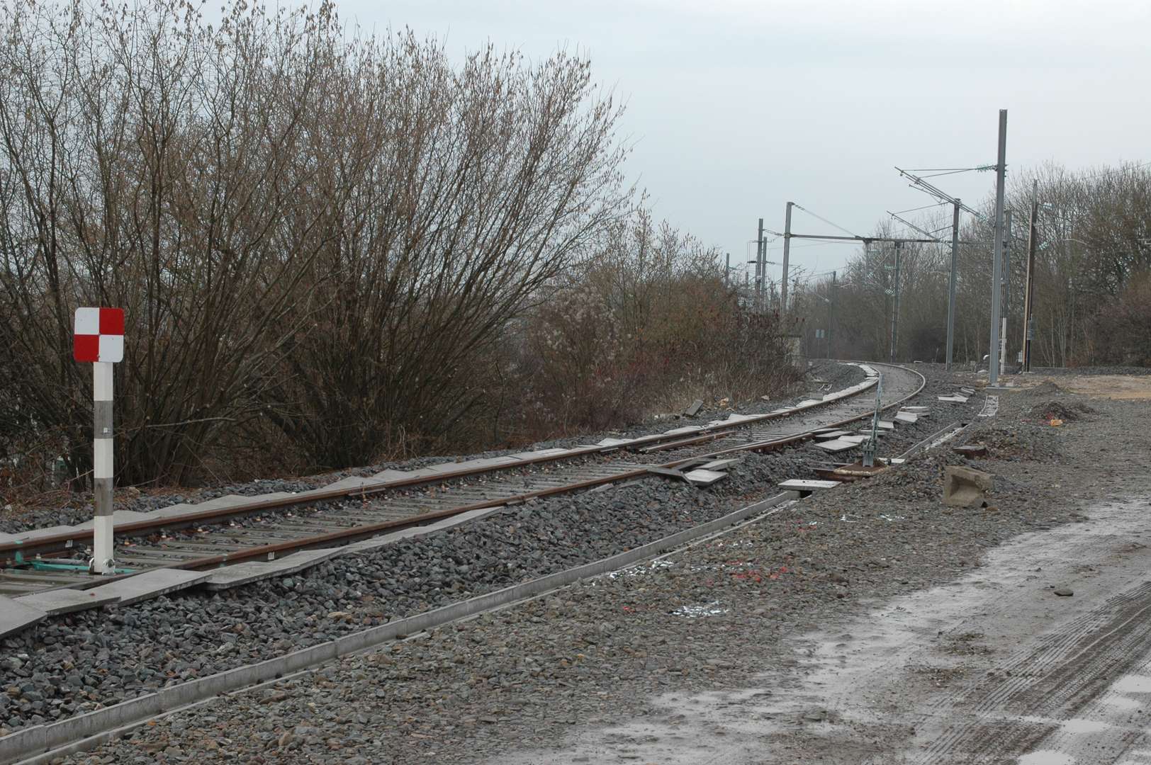Les poteaux de caténaire sont arrivé quasiment à la limite entre Danjoutin et Andelnans.