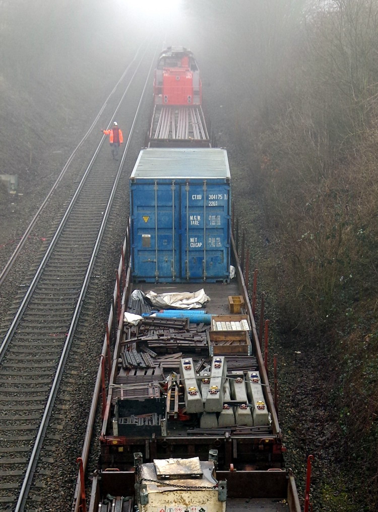 avec le passage d'une rame de TTX de Meccoli dans le froid et le brouillard givrant de Picardie