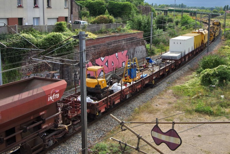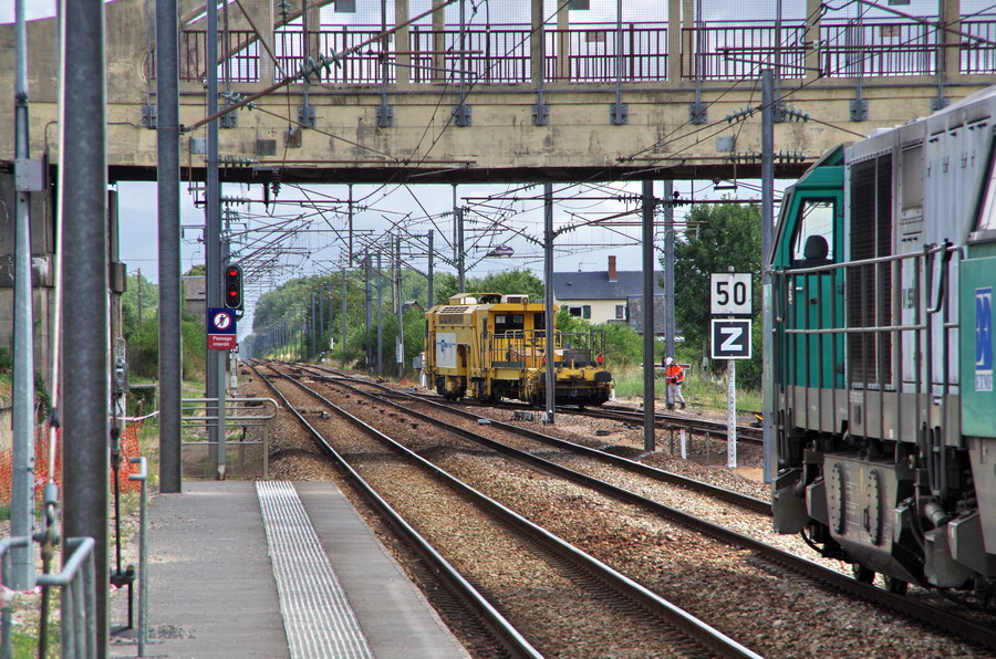 Trains de coupe et de pose P95 - 99 87 9 311 505-1 de Transalp Renouvellement passage en gare de d'Amiens-Saint-Roch