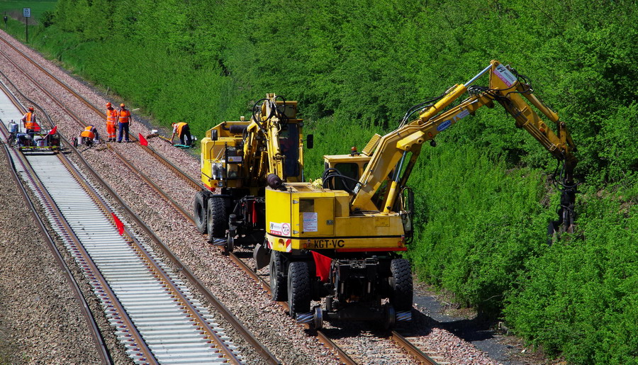 vue sur l'ensemble des trois Pelles Rail route à Hombleux (80) le 20-04-2018