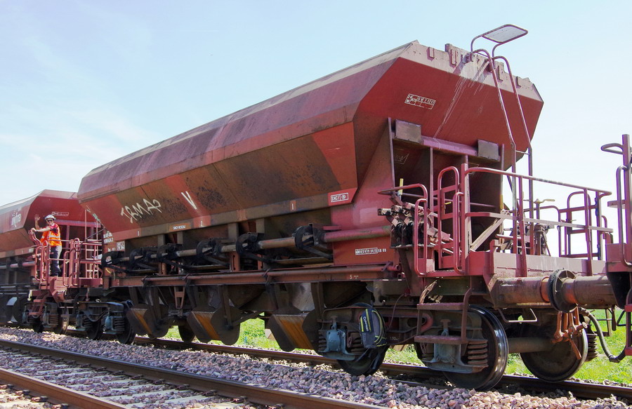 les wagons Trémies D12 de la rame MCK1 à Hombleux le 20-04-2018