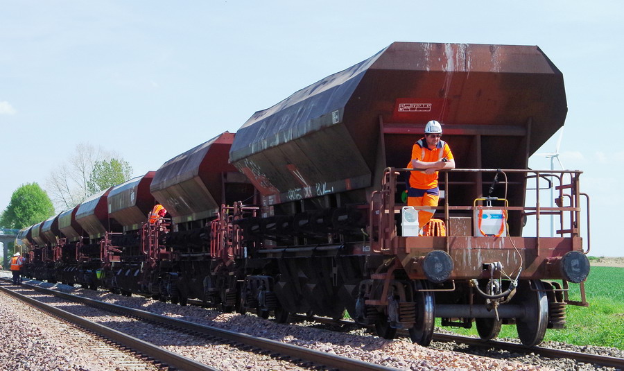 suite du reportage de la rame de Bourrage et Régalage pour la base de travaux de Meccoli à Laon le 19-04-2018