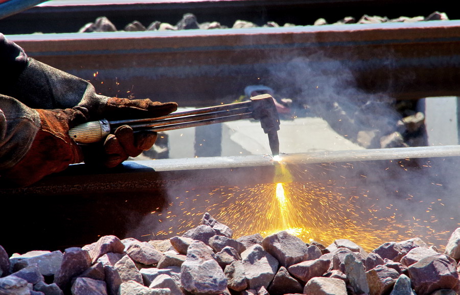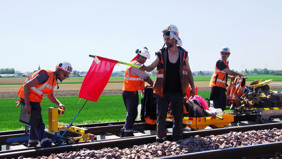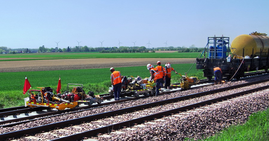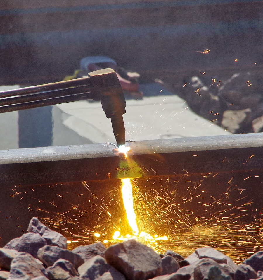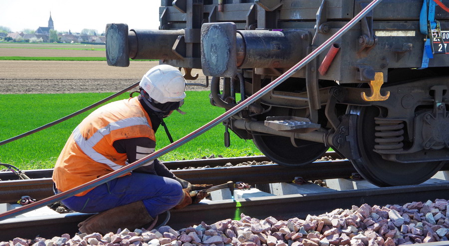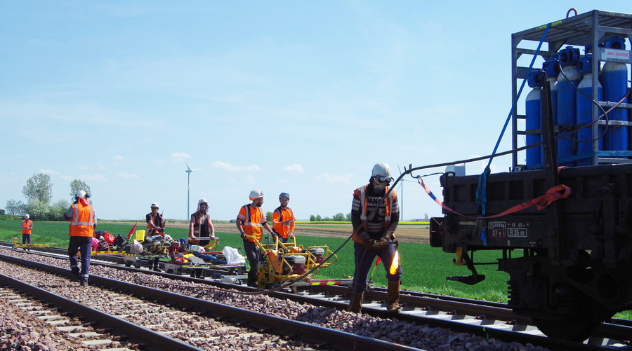 équipe d'ETF qui coupe le rail avec un chalumeau coupeur oxygène et butane à Hombleux le 20-04-2018
