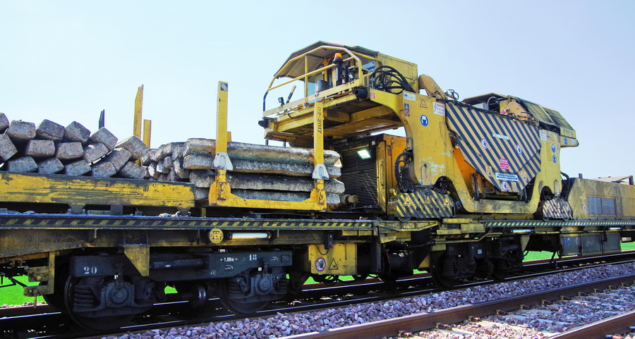 . wagon 4 WM - de manutention et groupe de travail avec chaîne de dégarnissage, dépose et pose de traverses)